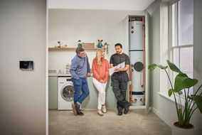 My brief was to provide a strong solution for the wall boiler unit and the inside cupboard cylinder. The set needed to be neutral yet subtly on-brand, featuring green and earthy tones to create an environmentally friendly ambience.